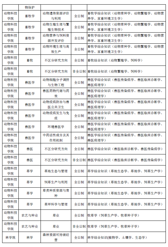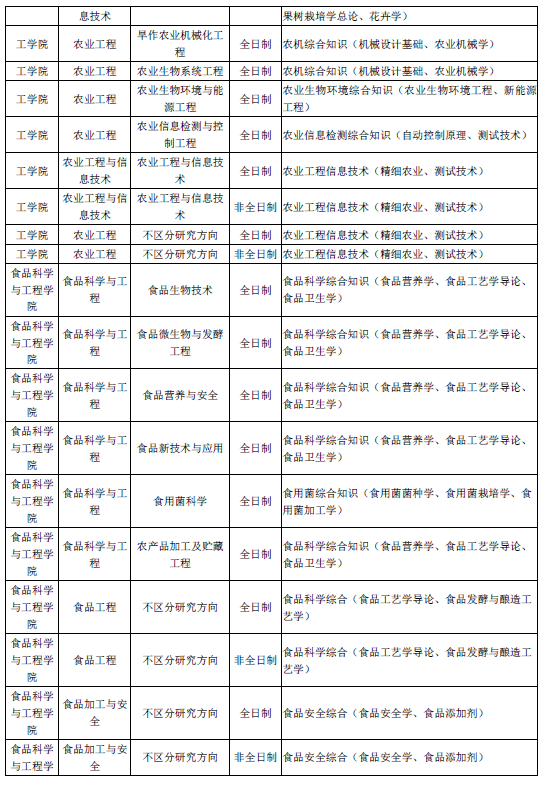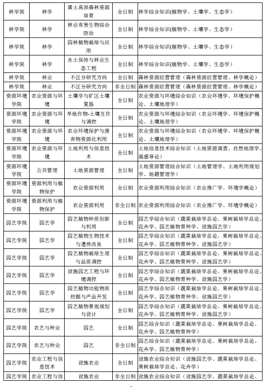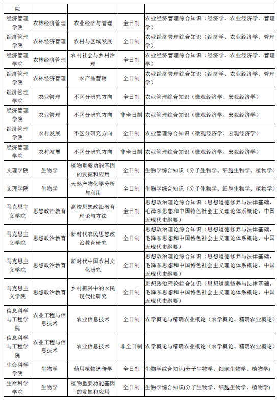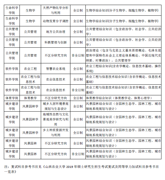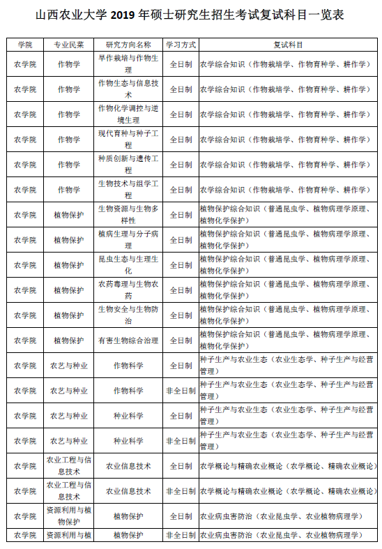 山西农业大学2019硕士研究生招生考试复试科目一览表