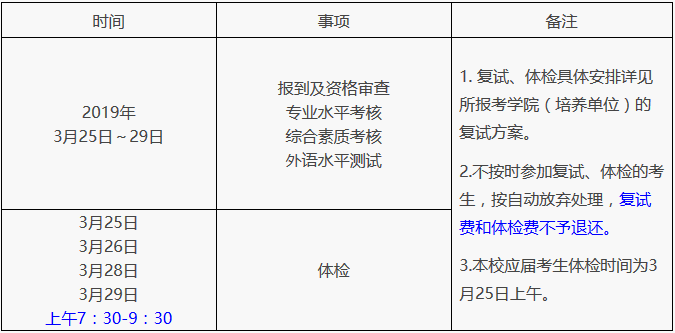 其他考生体检时间:3月25日、26日、28日和29日上午:7:30-9:30。