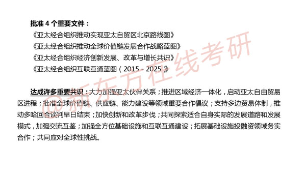 关注考研时事政治,了解最新的国内外时政新闻动态,及时把握时事,理论结合实际,新东方在线分享最新时政要点:2014年APEC峰会,帮你及时掌握时政要闻。