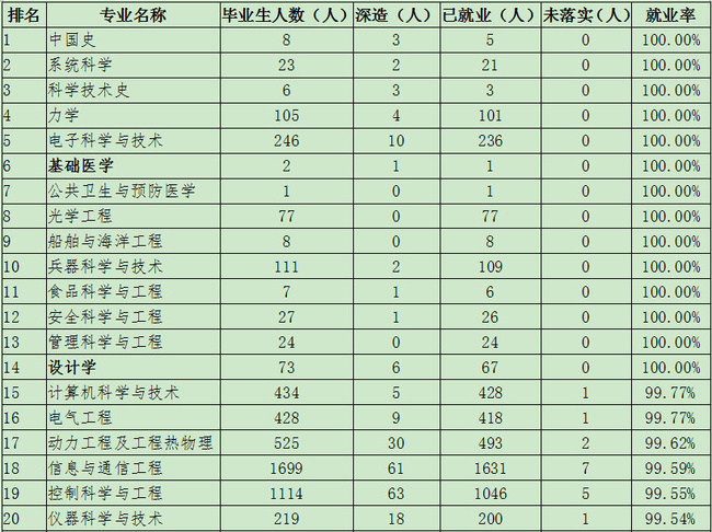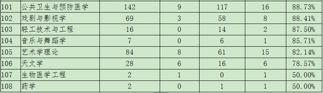 简单分析,就可以看出就业率排名前30的专业大部分都属于工科。个别就业率100%的专业,因为毕业生人数人少,不具有样本意义,这里就不在多说。与专硕一样,这些毕业生人数极少的冷门专业正因几乎没有竞争,反而就业率相对很高。所以,对这些专业有兴趣的同学可以考虑。毕竟复习一年读研三年,没有兴趣怎么可能坚持下来?