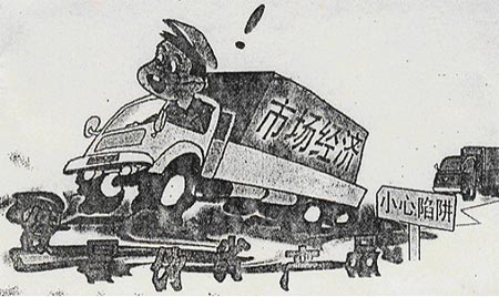 As the picture given depicts, the socialist market-oriented economy in our country is developing rapidly, just like a truck running at a high speed. But the general public is surprised to find that there are more and more fake and inferior products seriously hampering the expansion of our marker economy. Consumers have to be very careful in purchasing goods and services they need; otherwise they will fall into the traps set by the illegal manufacturers who make fake and inferior products.