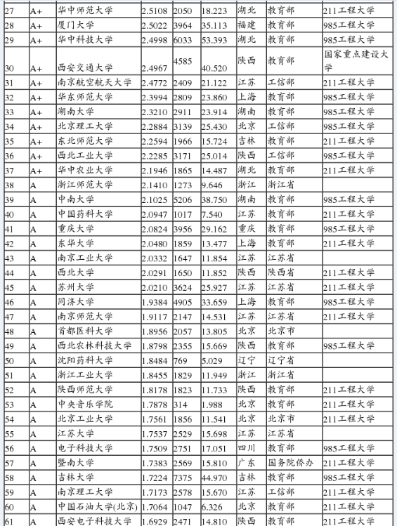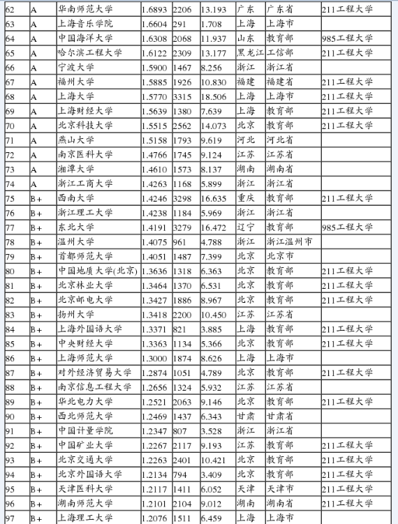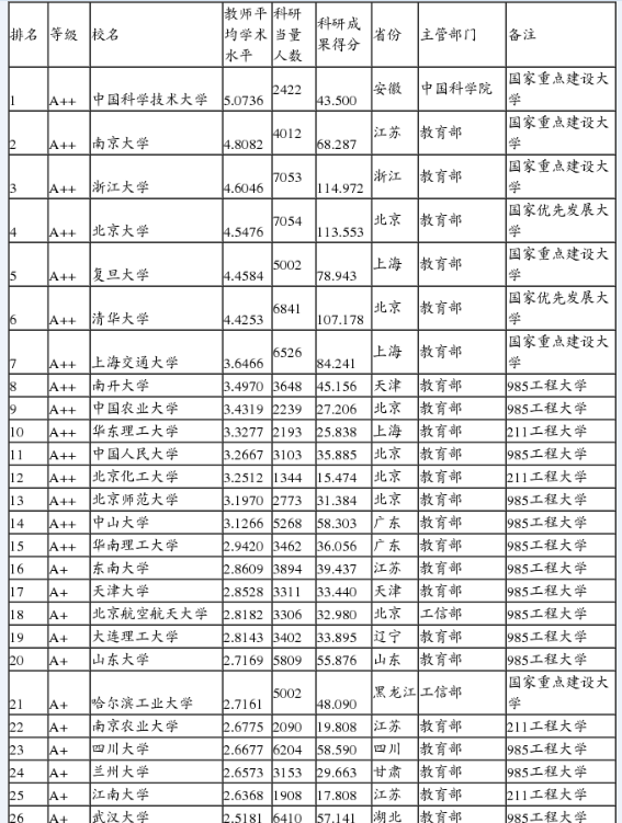 (表中“教师平均学术水平”一栏的数据,是以全国734所大学的教师平均学术水平为1计算的)