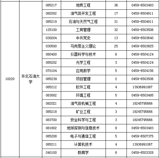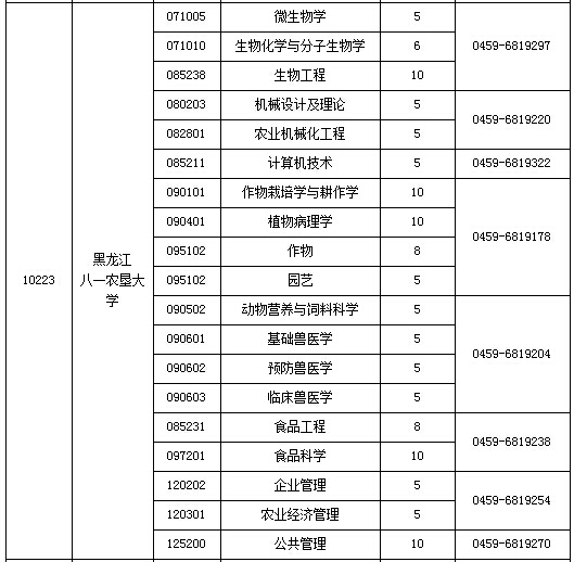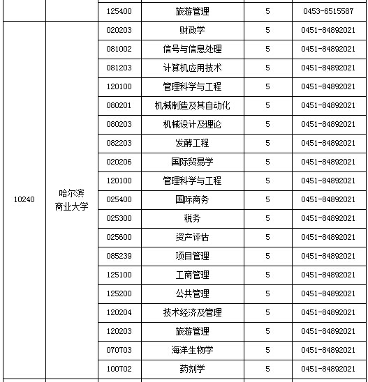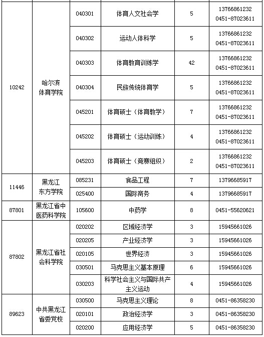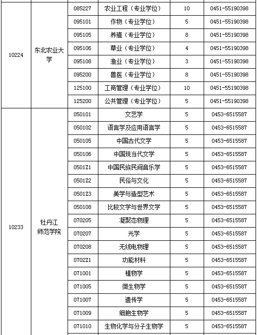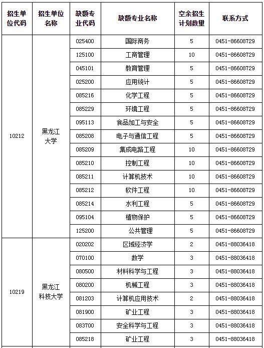 2015年黑龙江省硕士研究生各招生单位空余招生计划表