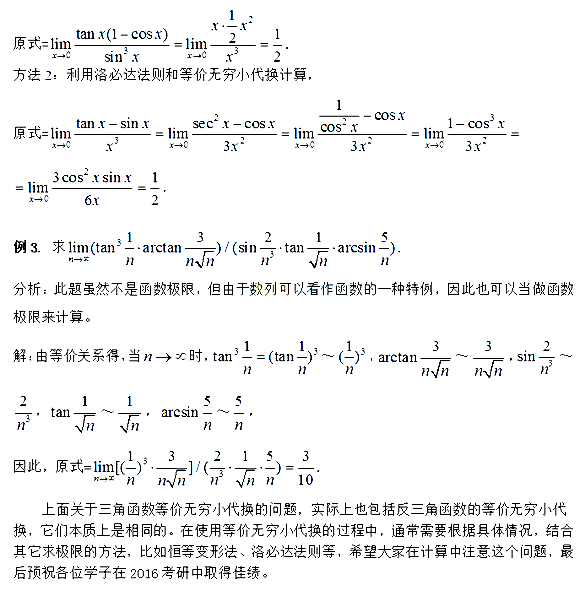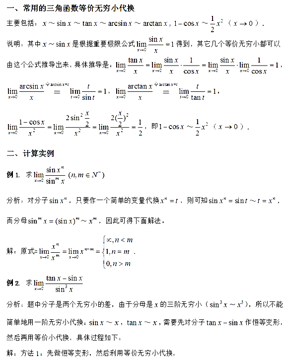 求极限是考研数学重要考点,可以说每年必考。求极限的方法有很多,考生若能全都掌握,应对各类求极限题型就可轻松过关。下面,新东方在线为大家讲解各类求极限的方法,希望考生认真理解。下面是三角函数等价代换求极限。