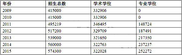 注:2010年开始设置专业硕士,因此,2011年开始专业硕士招生工作。招生总数中包括农村师资、强军计划和援藏计划。