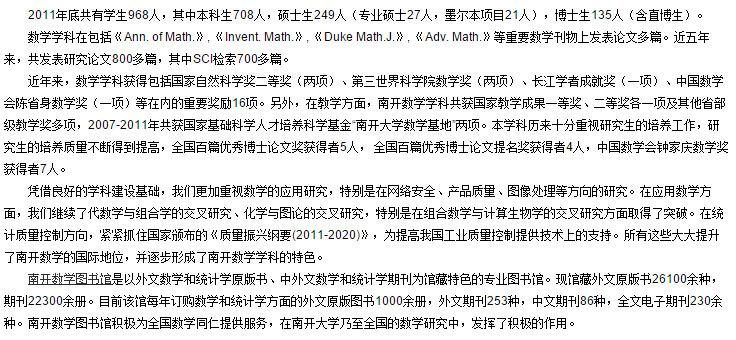 2016考研院校介绍:南开大学数学科学学院