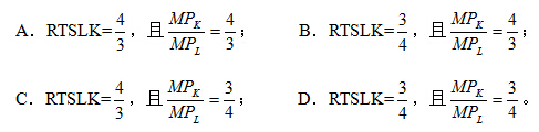 3.在维持产量水平不变的条件下,如果企业增加三个单位的劳动投入量就可以减少四个单位的资本投入量,则有( )。