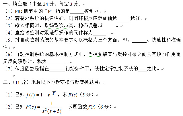 自动控制原理(805)试题
