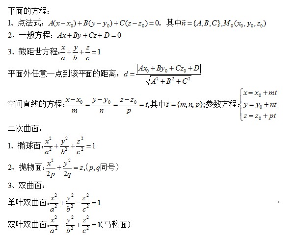 考研数学公式之高等数学空间解析几何和向量代数公式
