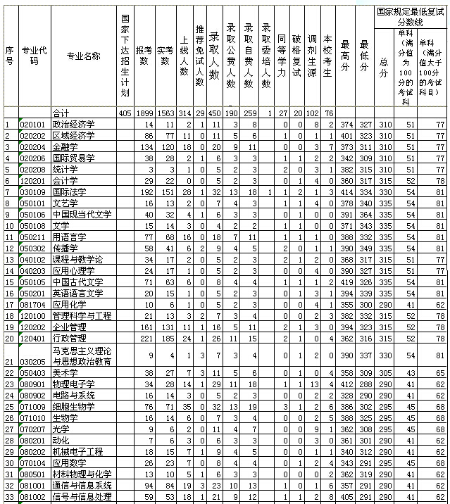 深圳大学2004年硕士生录取情况统计表