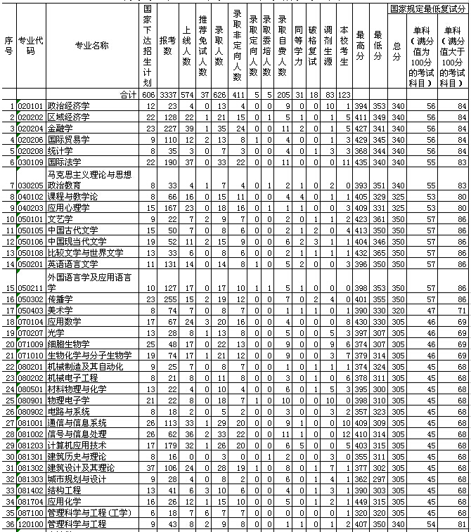 深圳大学2006年硕士生录取情况统计表