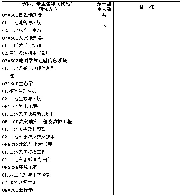 成都山地灾害与环境研究所2016推免生招生专业目录