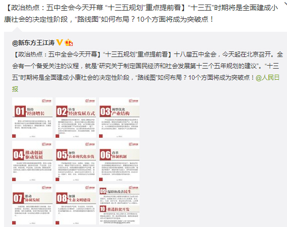 | 观全局 | 十八届五中全会开幕 10大亮点提前看 |