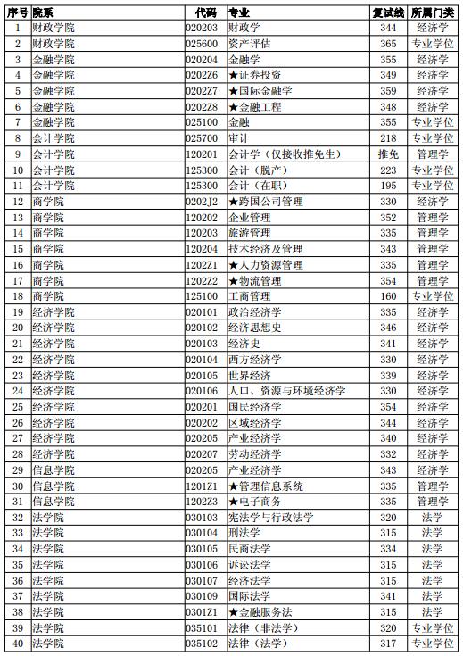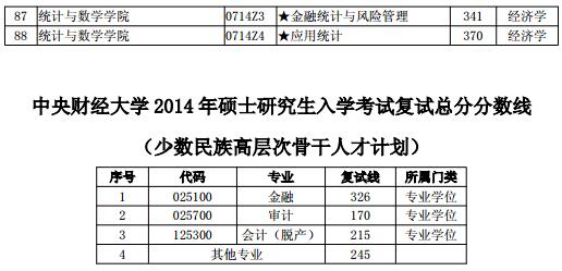 中央财经大学2014年硕士研究生入学考试复试总分分数线