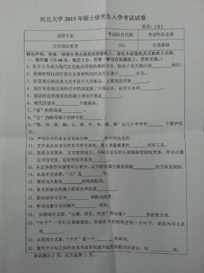 2015年河北大学354汉语基础考研试题
