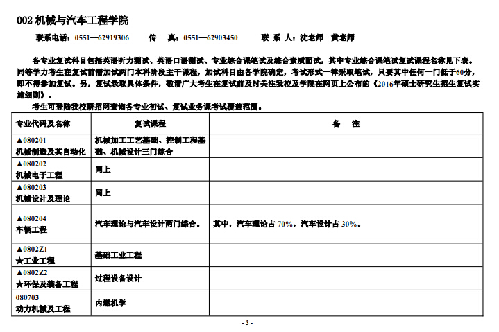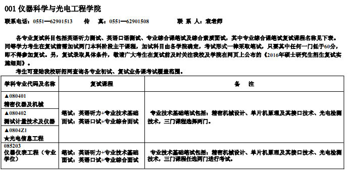 完整版下载:合肥工业大学2016考研复试科目要求