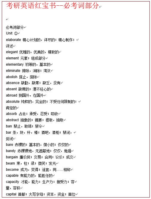 考研英语红宝书--必考词汇 word下载