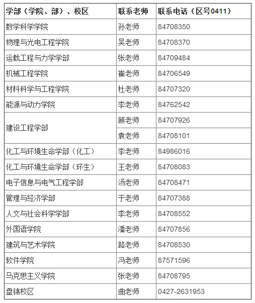 各学部(学院、部)、盘锦校区教务员老师联系方式