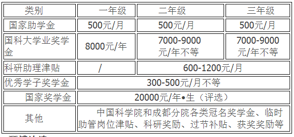 在学期间,本所为研究生提供了高额奖助体系。同时为在学研究生购买了成都市大学生普通医疗保险和意外保险。除此之外,成都有机化学研究所在学硕士研究生还享受以下奖助学金待遇: