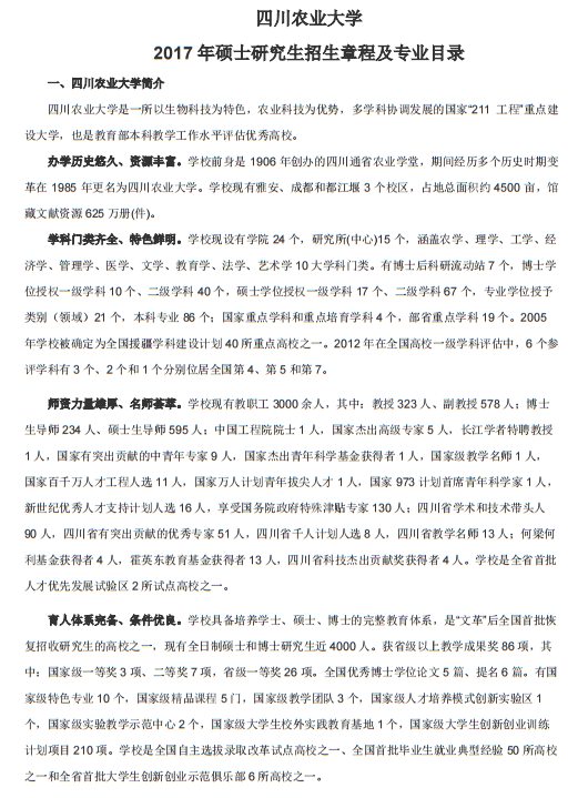 四川农业大学2017考研招生简章已公布,具体详情请下载附件后进行详细查看: