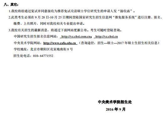 中央美术学院2017年接收推免生办法