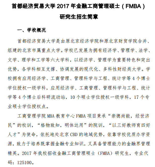 首都经济贸易大学FMBA2017年考研招生简章已发布,查看完整版下载附件: