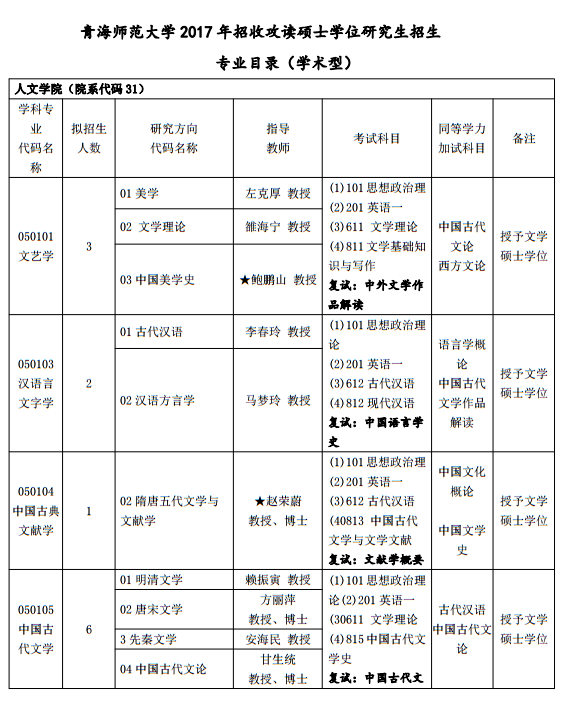 2017年青海师范大学考研专业目录已经公布,由于内容过多,请点击附件下载: