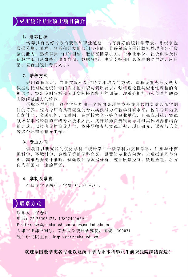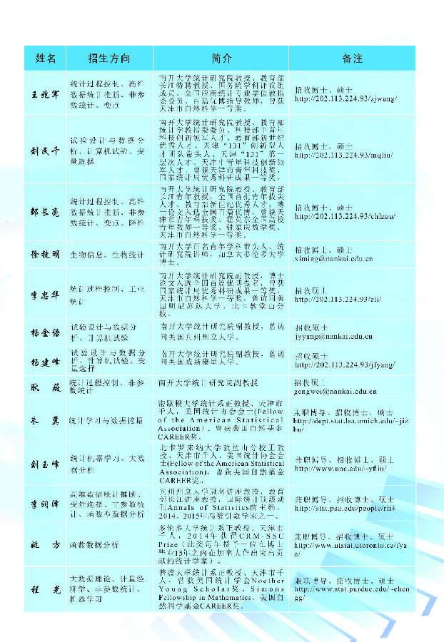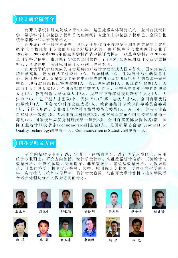 南开大学统计研究院2017年研究生招生简章
