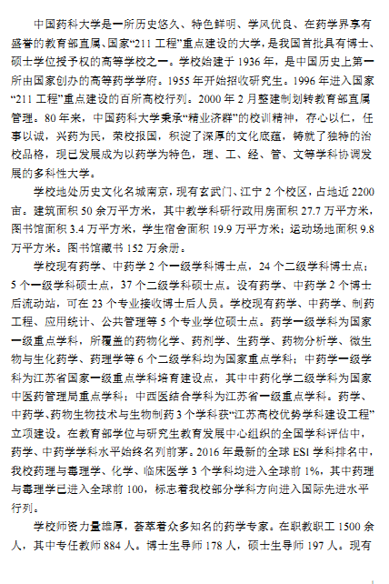 中国药科大学2017年考研招生简章记专业目录发布,查看详情点击下载附件: