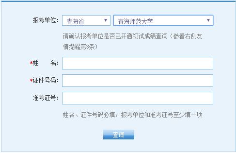 青海2017考研初试成绩查询入口开通,青海师范大学分数可查。报考本研招单位的考生可登录研招网通过姓名、研招单位、证件号、准考证号查询成绩。为下一步复试调剂做好准备。更多其他省市院校成绩查询时间及入口关注【新东方在线2017考研成绩查询专题】