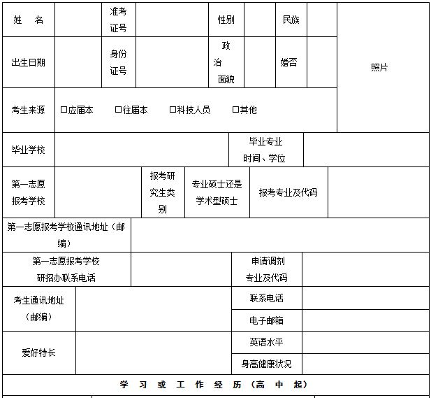 附件:核工业北京地质研究院硕士研究生入学调剂申请表