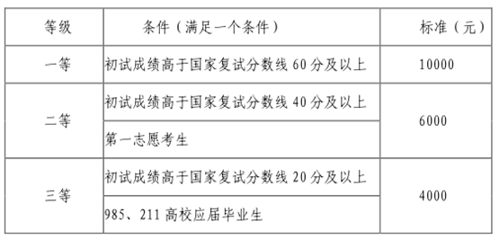 为鼓励优秀学生报考、调剂我校的学术硕士,设置新生奖学金,于研究生入学报到后一次性发放。奖励条件及标准如下: