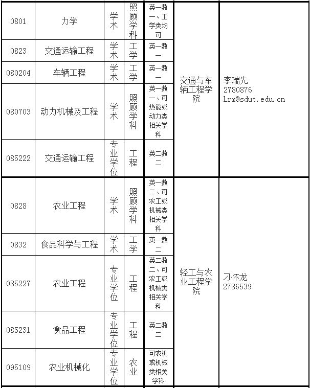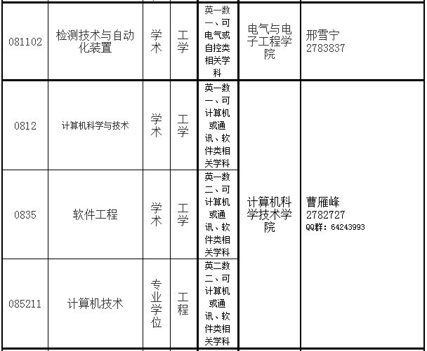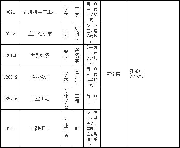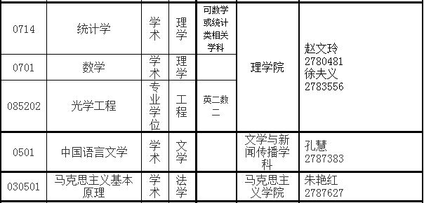 全日制硕士研究生预调剂学科(领域)及学院联系方式