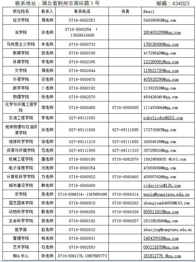 联系地址:湖北省荆州市南环路1号 邮政编码:434023