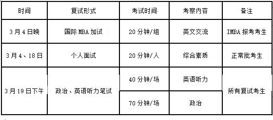 (一)复试内容:政治、英语、综合素质、国际MBA加试。