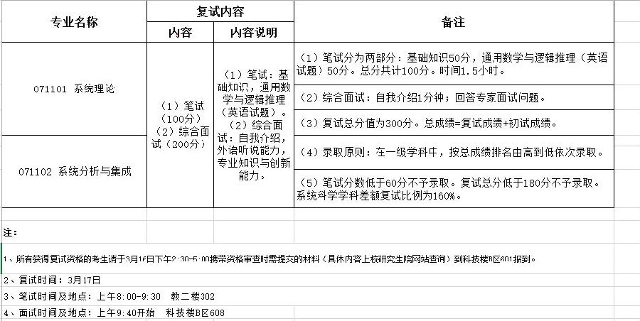 北京师范大学系统科学学院2017年学术型硕士复试方案及要求