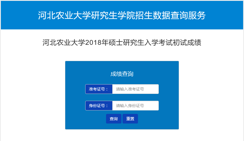 1.本次可查询的是河北农业大学2018年硕士研究生入学考试自命题成绩(不包括统考成绩,系统中统考成绩暂时显示为‘0’)。