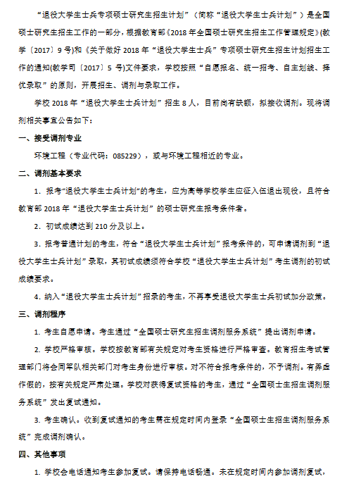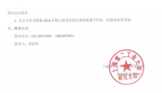据上海第二工业大学研究生院消息,2018年上海第二工业大学“大学生专项士兵招生计划”考研调剂信息已发布,详情如下: