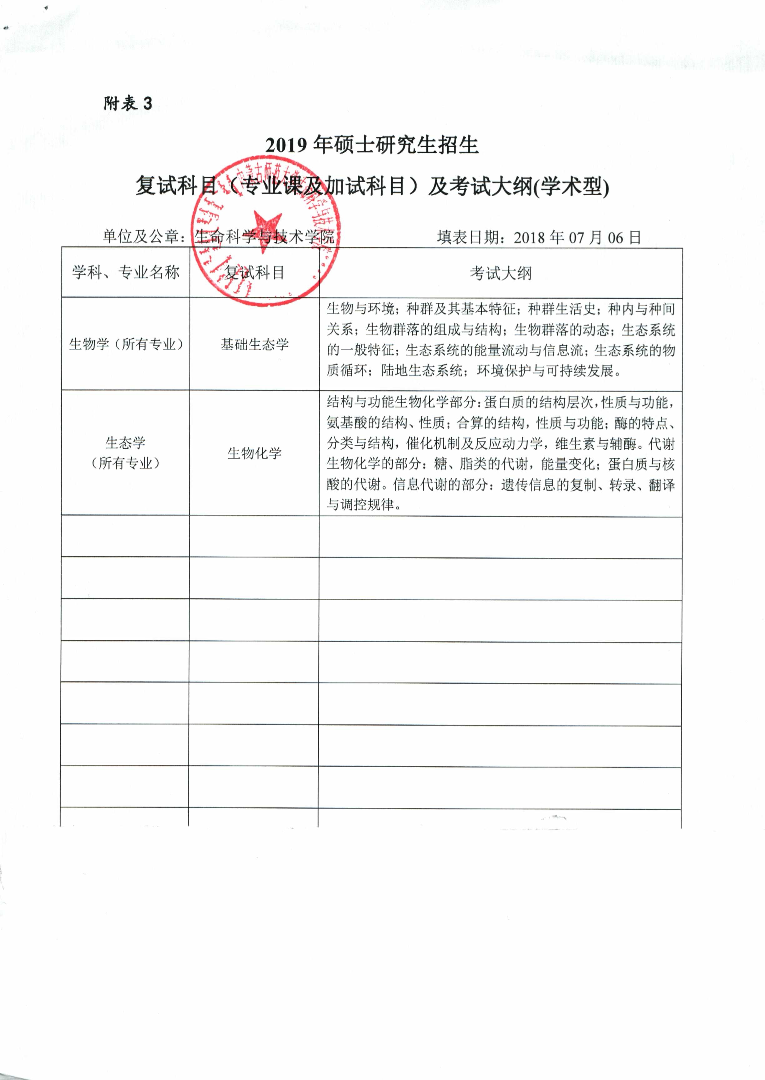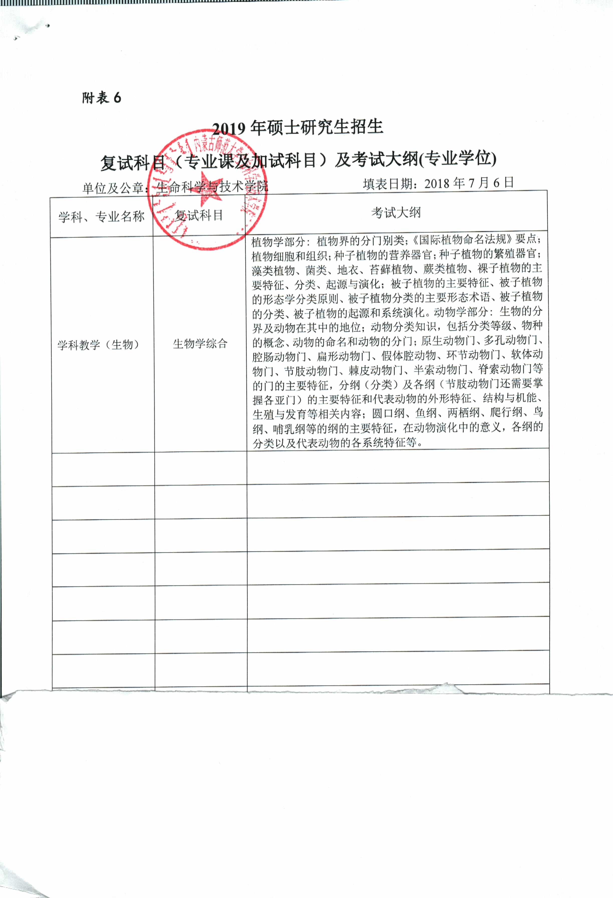 内蒙古师范大学生命科学与技术学院2019复试科目及考试大纲