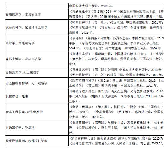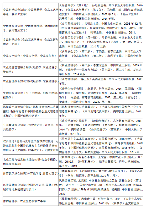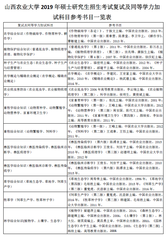 山西农业大学2019考研复试同等学力加试科目参考书目一览表