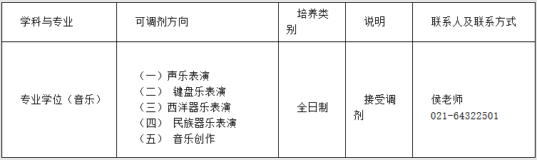 音乐学院部分专业有调剂名额(具体名额以学校公布为准),欢迎考生申请调剂。正式调剂请关注将于2019年3月20日开通的中国研究生招生信息网“全国硕士生招生调剂服务系统”通知。届时,符合条件且有调剂意愿的考生可及时上网了解调剂信息和调剂系统的使用方法,按要求申请调剂。