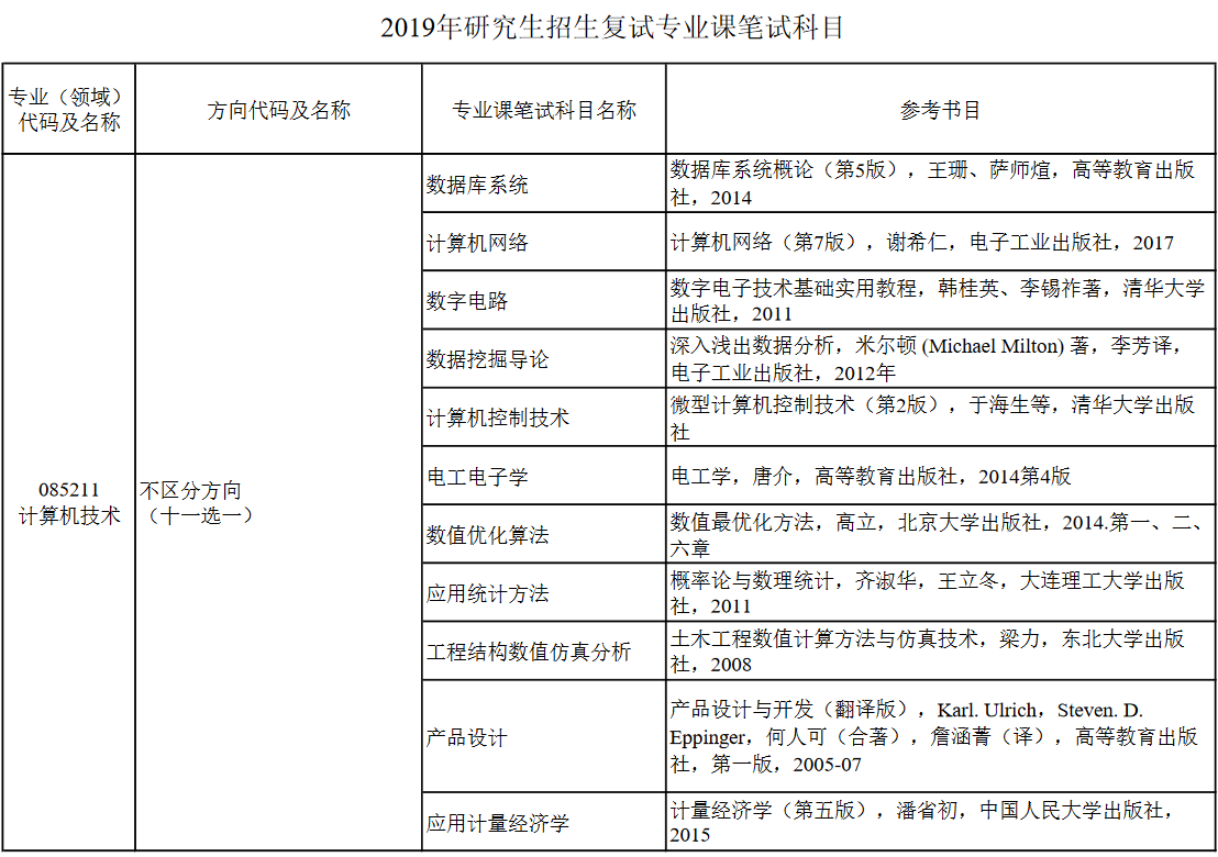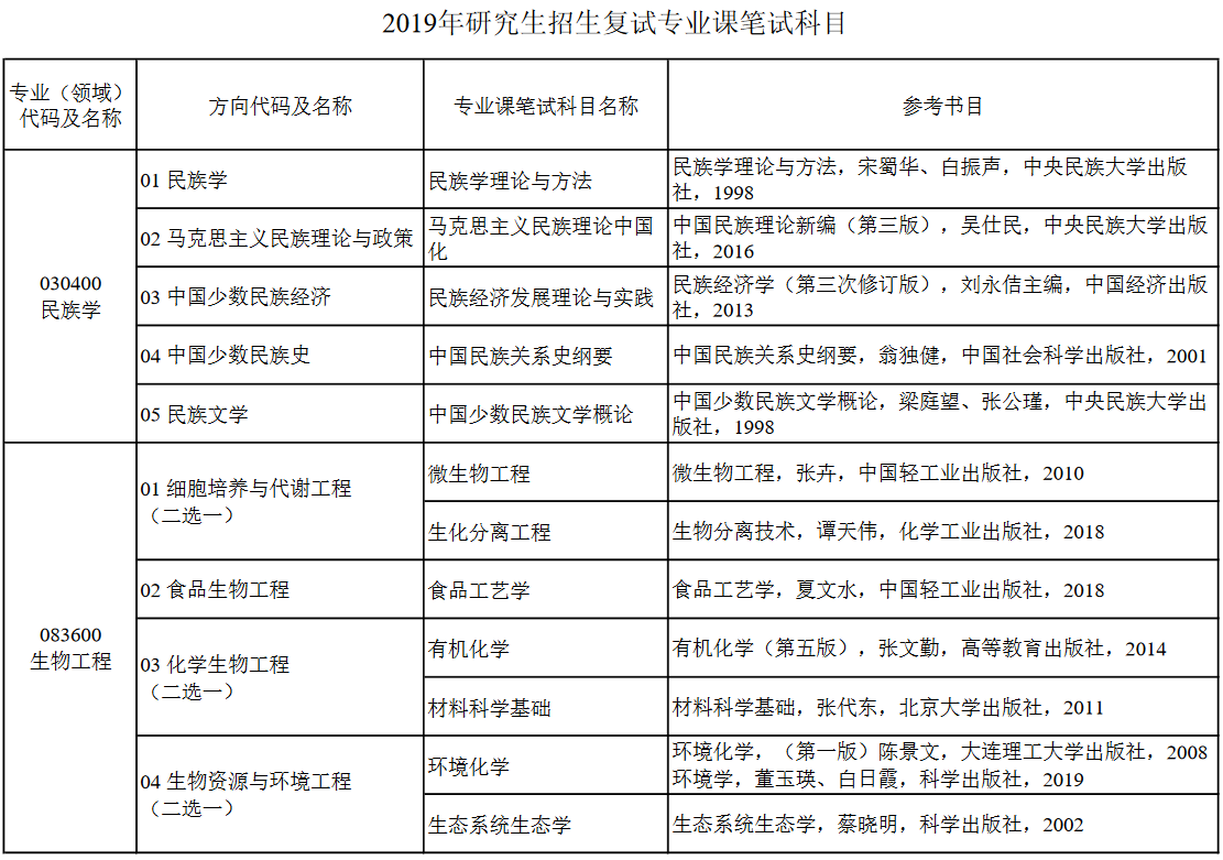 大连民族大学2019年研究生招生复试专业课笔试科目