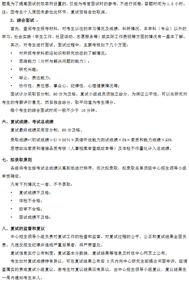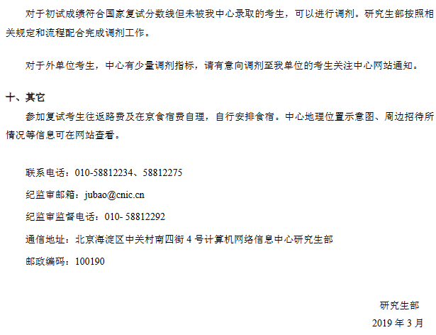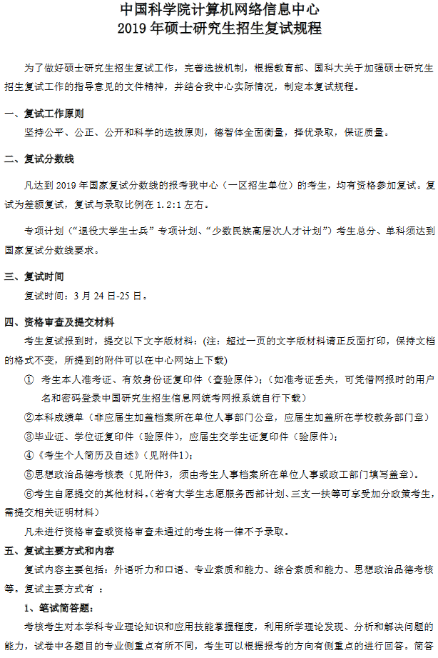 中国科学院计算机网络信息中心2019硕士研究生招生复试规程