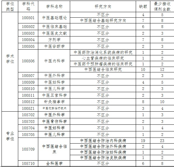 2.所有调剂考生均须通过“全国硕士研究生招生调剂服务系统”申请调剂。报考中医专业学位的考生允许调至学术学位,学术学位考生不能调至中医专业学位。
