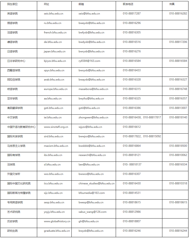 北京外国语大学研究生招生办公室:010-88816246;