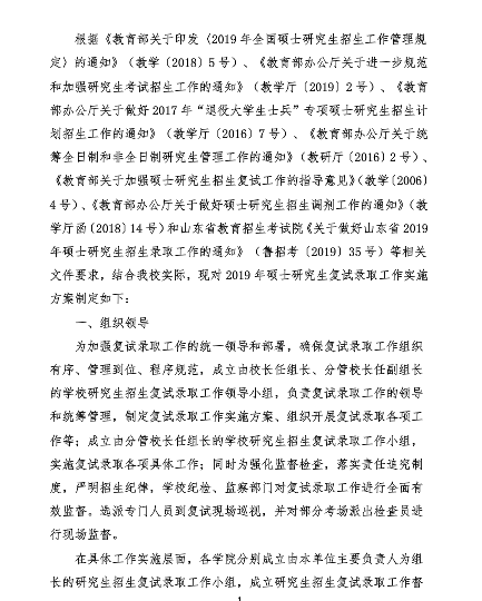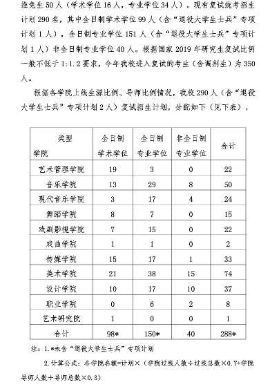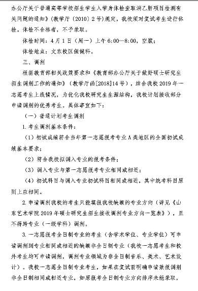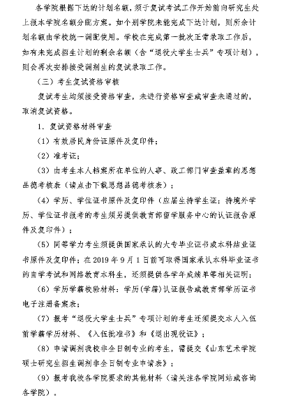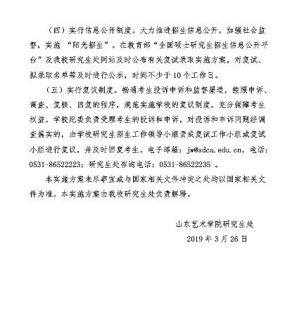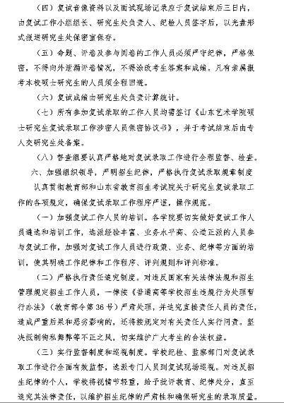 山东艺术学院2019年考研复试录取工作实施方案