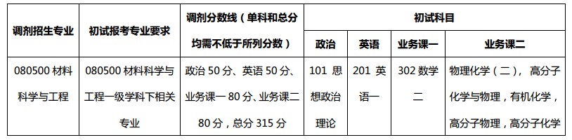 调剂专业:080500|材料科学与工程;调剂生源范围:仅接受第一志愿报考华南理工大学080500材料科学与工程专业的考生