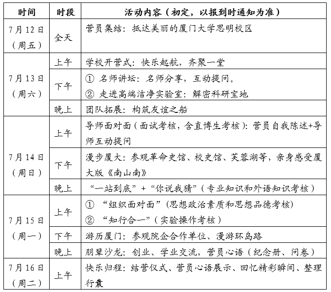 额的夏令营营员,符合《厦门大学2020年推荐免试研究生(含直博生)招生简章》规定,可直接预录取为2020年相关专业的硕士研究生或者直接攻读博士学位,免参加我校九月份或十月份的推荐免试研究生(含直博生)考试;