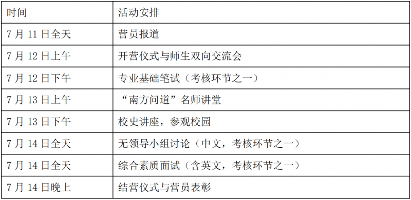 【注:夏令营活动结束后原则上不再另外安排面向校内外的推免生复试工作。】