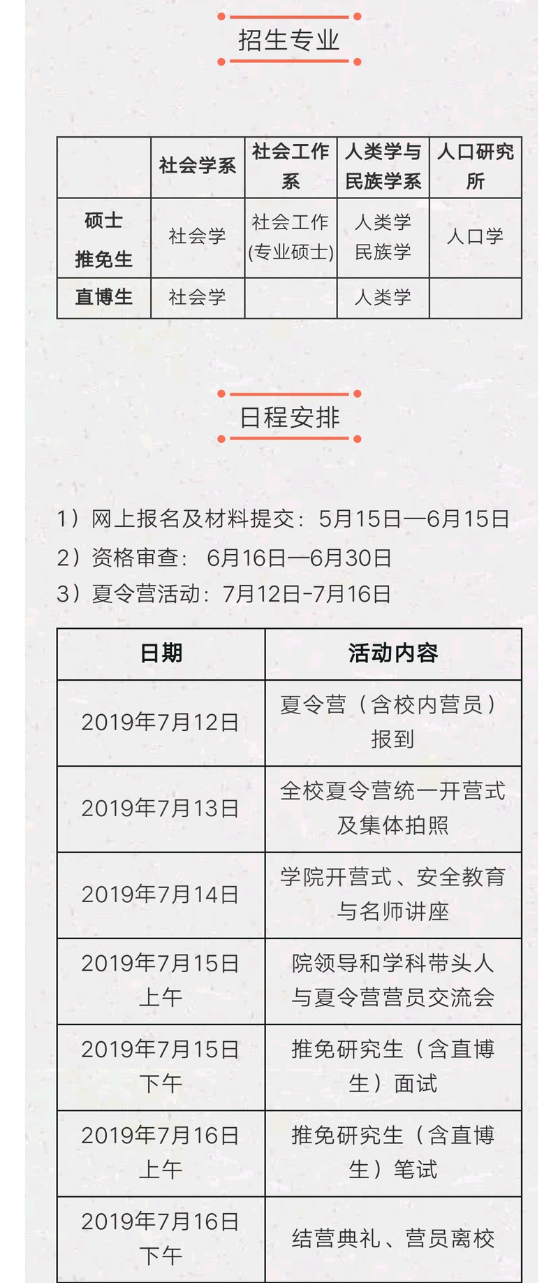 【备注:厦门大学本校学生推荐免试至我院攻读硕士、直博生,也须报名参加夏令营活动。】